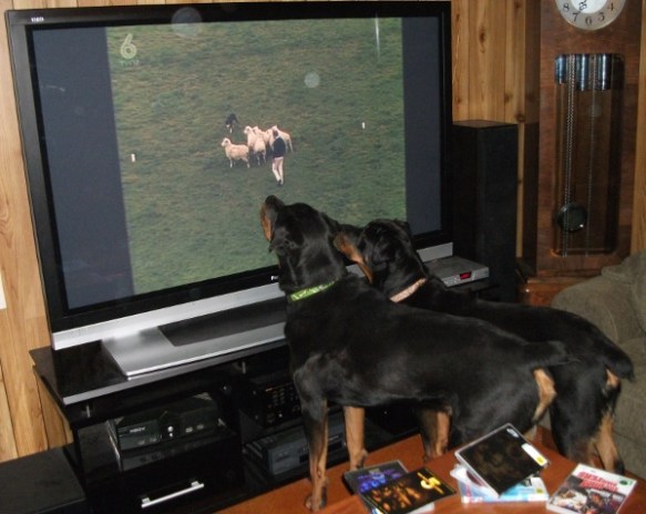 Last month, I mentioned Kirk’s fascination with The Dog Show – it was on again last night (yes, dogs up well past their bedtime) and the first time wasn’t just a fluke or coincidence…while they both turn their nose up at classics like The Dam Busters or B5, as you can see, this really grabs them….