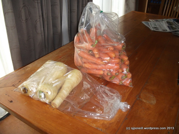 I get that they are actually white and orange but compared to some other aspects of my diet they are very green…so green, in fact, that I have been so busy juicing that I didn’t have any tea or coffee for the first three days I was back at home…I’m chewing through the carrots (literally) but I will have to freeze some of the parsnips for a later appointment with the steaming dish…
